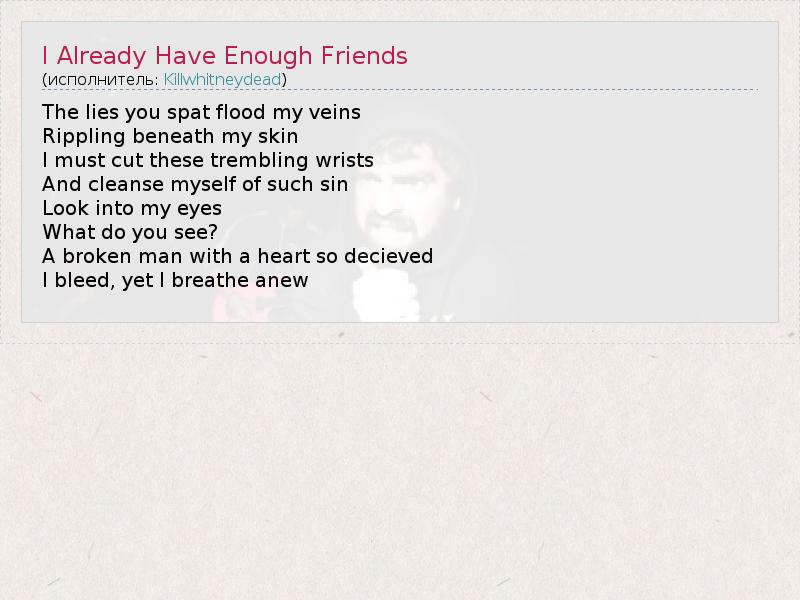 А как ты думаешь, о чем песня "I Already Have Enough Friends" ?