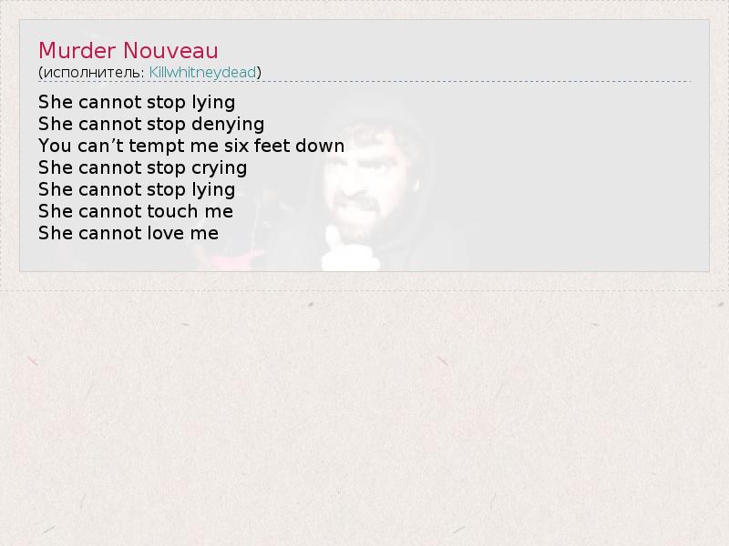 А как ты думаешь, о чем песня "Murder Nouveau" ?