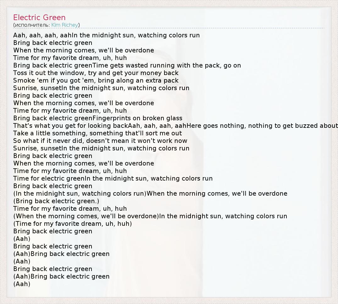 А как ты думаешь, о чем песня "Electric Green" ?