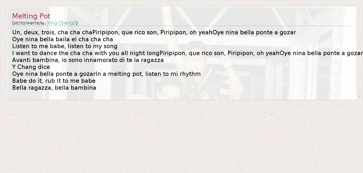 Oye nina bella ponte a gozarIn a melting pot, listen to mi rhythm