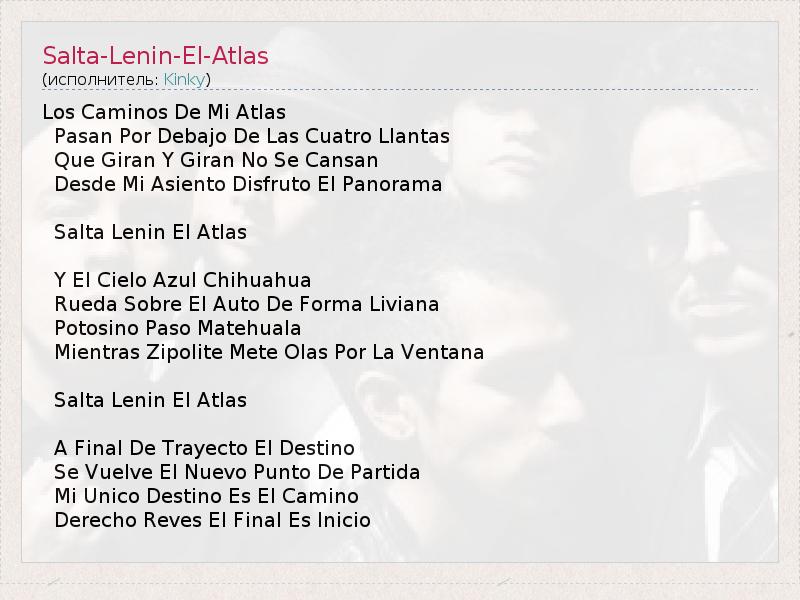 А как ты думаешь, о чем песня "Salta-Lenin-El-Atlas" ?