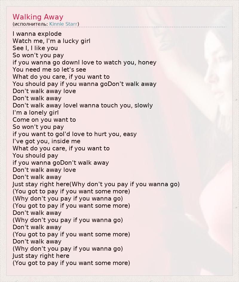 You should pay if you wanna goDon't walk away
