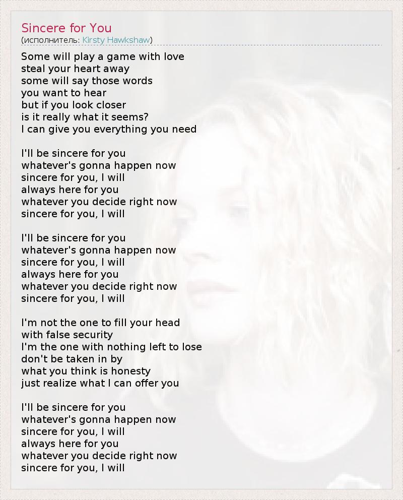 А как ты думаешь, о чем песня "Sincere for You" ?