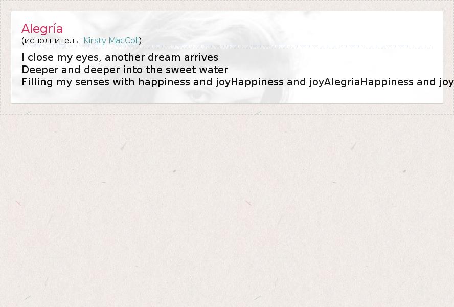 Это интересно:Керсти МакКолл (Kirsty MacColl) (10 октября 1959, Кройдон, Великобритания – 18 декабря 2000, Косумель, Мексика), дочь фолк-певца и автора песен Эвана МакКолла (Ewan MacColl), начала свою собственную музыкальную карьеру еще подростком, выступая с панк-группой the Drug Addix в качестве бэк-вокалистки. Во время одного из концертов группы ее заметили представители легендарного лейбла Stiff Records, которые поспешили подписать... продолжение