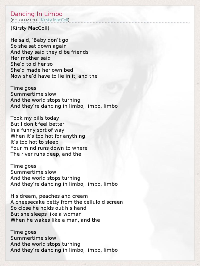 А как ты думаешь, о чем песня "Dancing In Limbo" ?