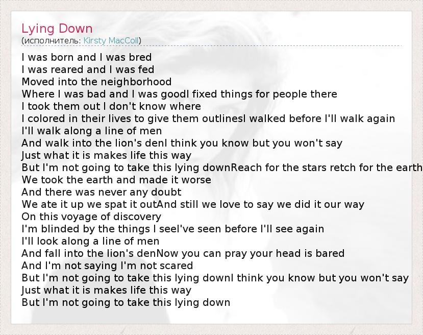 А как ты думаешь, о чем песня "Lying Down" ?