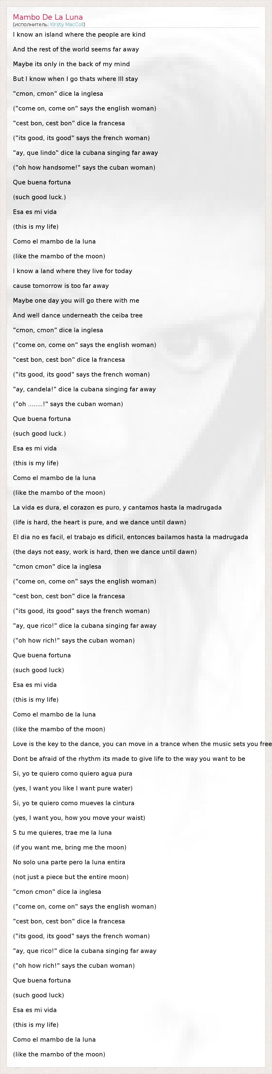 А как ты думаешь, о чем песня "Mambo De La Luna" ?