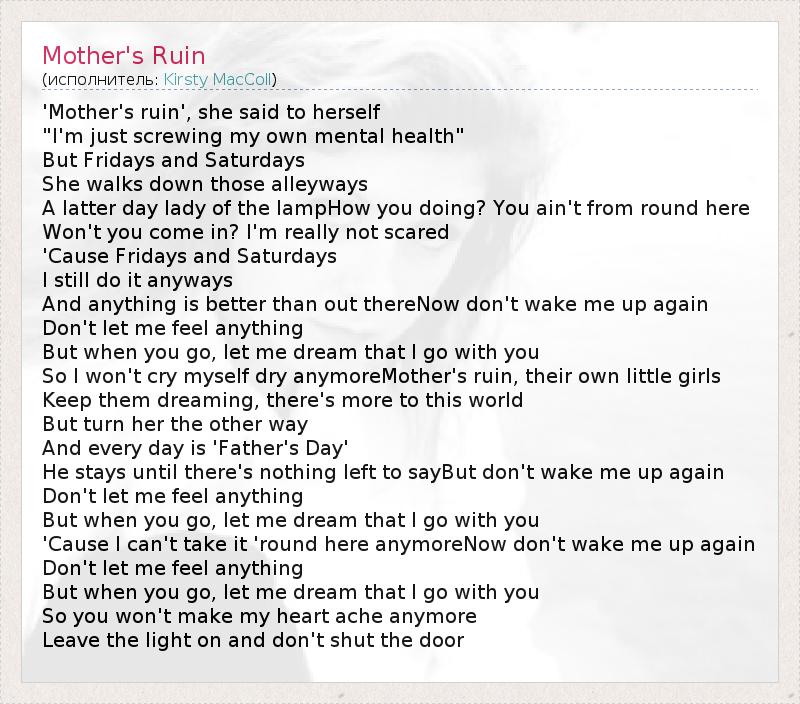 А как ты думаешь, о чем песня "Mother's Ruin" ?