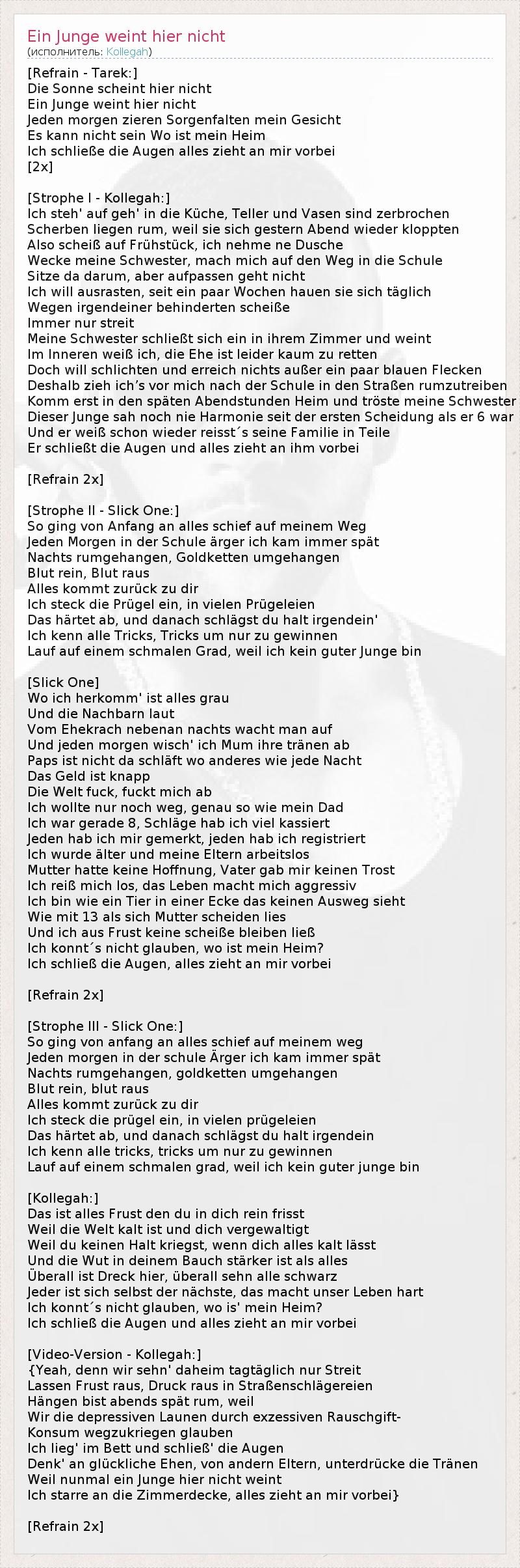 ГлавнаяИсполнителиKollegahEin Junge weint hier nicht