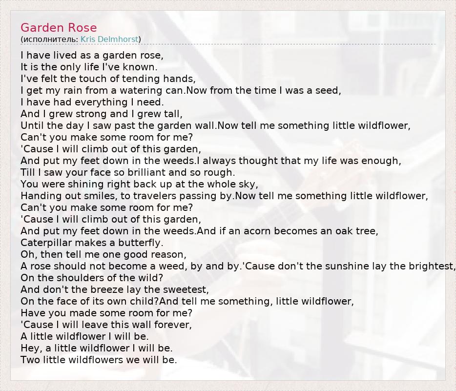 А как ты думаешь, о чем песня "Garden Rose" ?