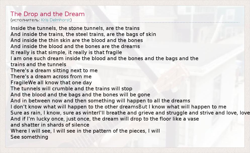 А как ты думаешь, о чем песня "The Drop and the Dream" ?