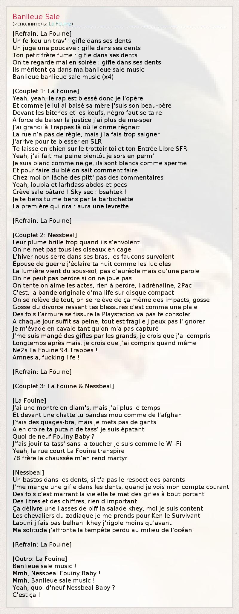 А как ты думаешь, о чем песня "Banlieue Sale" ?