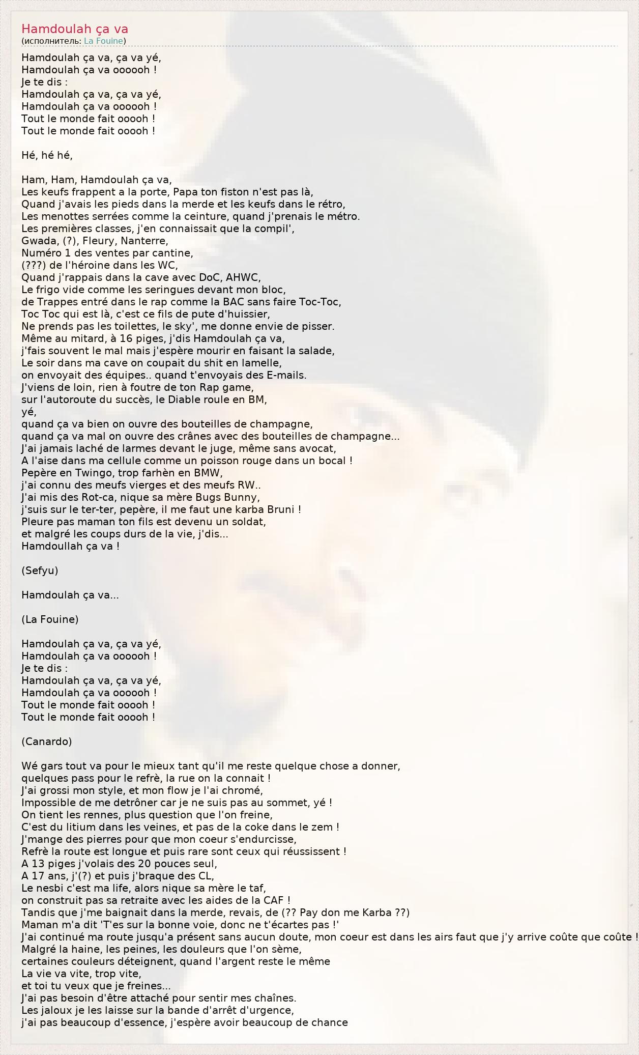 А как ты думаешь, о чем песня "Hamdoulah ça va" ?