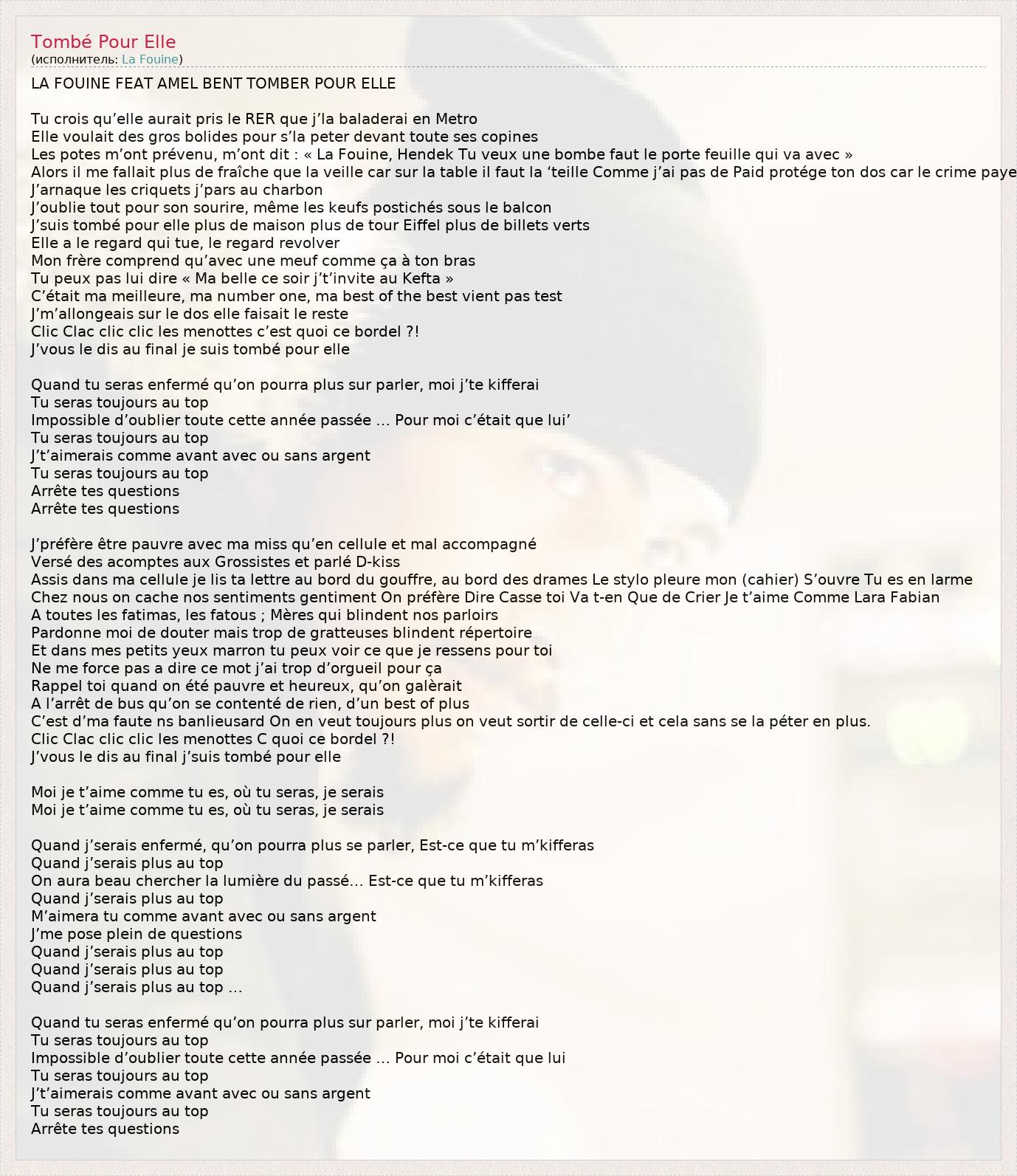 LA FOUINE FEAT AMEL BENT TOMBER POUR ELLE