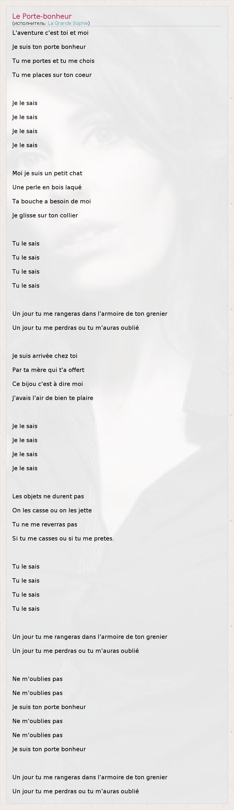 А как ты думаешь, о чем песня "Le Porte-bonheur" ?