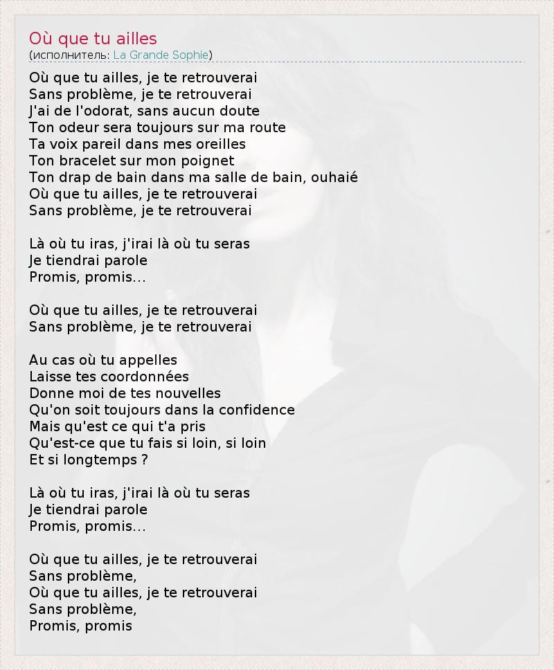 А как ты думаешь, о чем песня "Où que tu ailles" ?