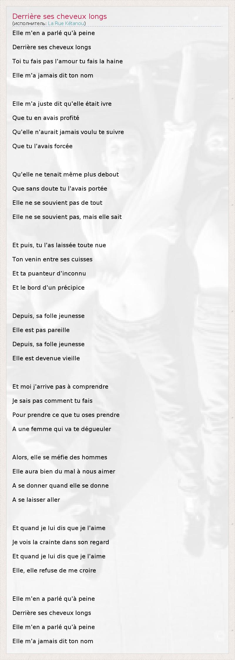 А как ты думаешь, о чем песня "Derrière ses cheveux longs" ?