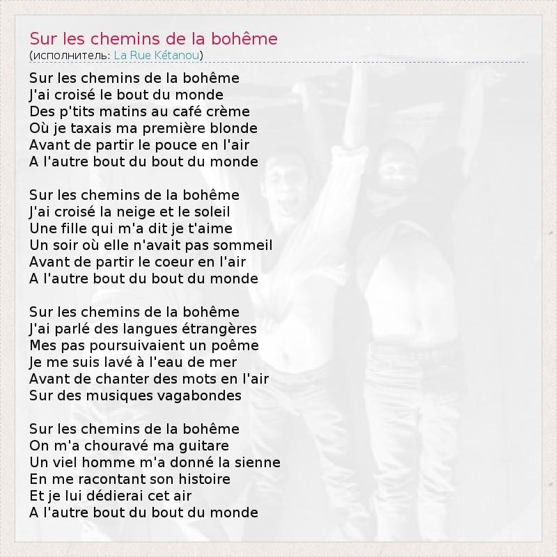 А как ты думаешь, о чем песня "Sur les chemins de la bohême" ?