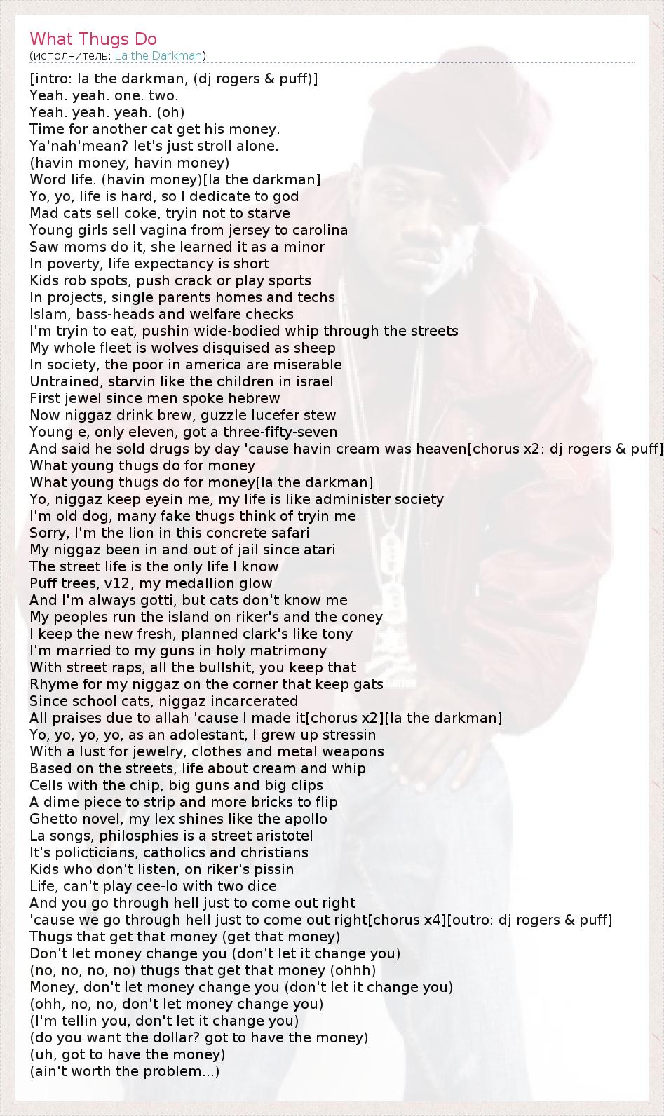 А как ты думаешь, о чем песня "What Thugs Do" ?