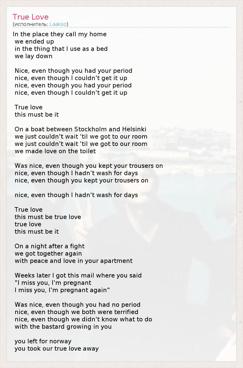А как ты думаешь, о чем песня "True Love" ?