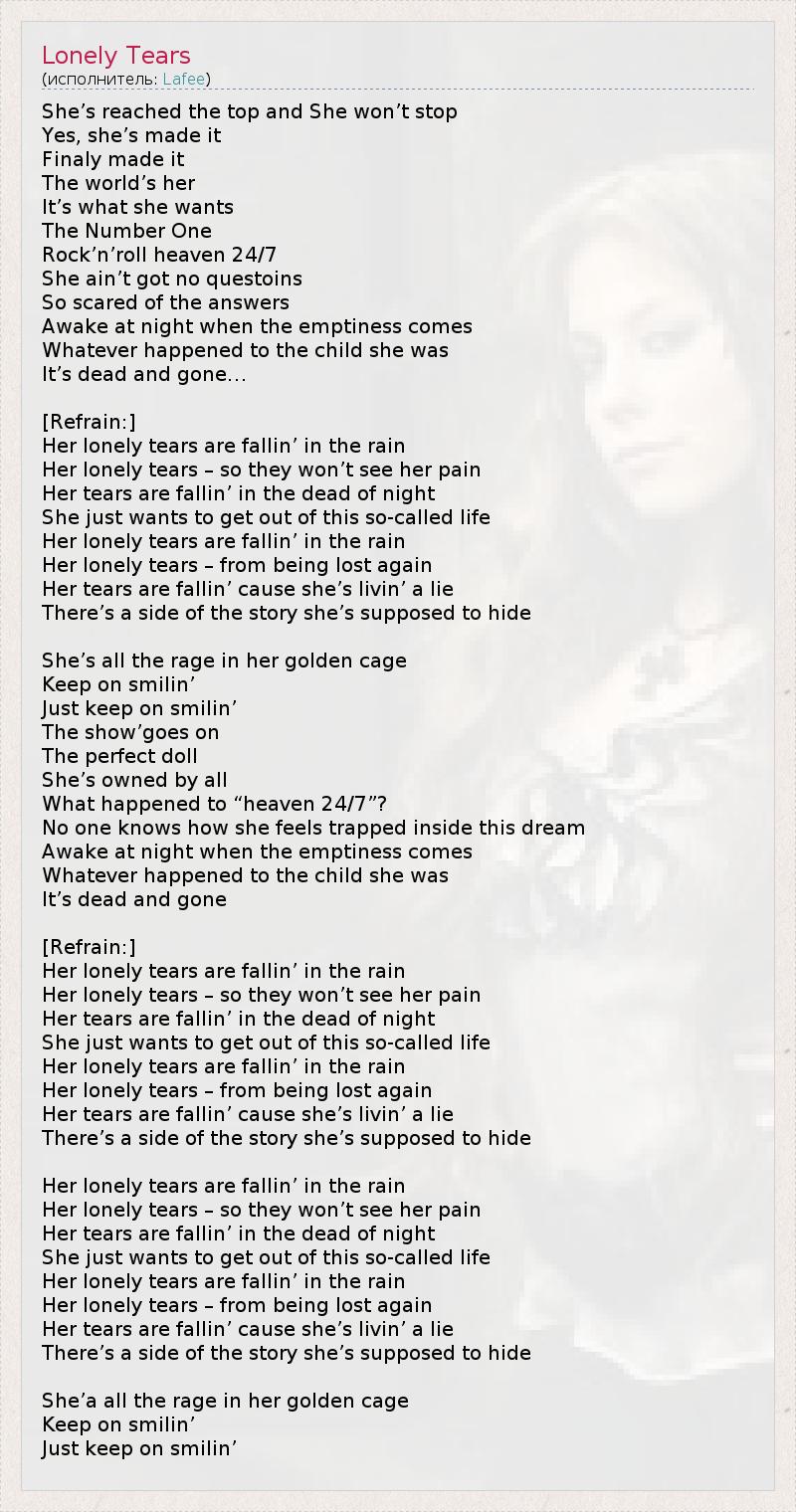 А как ты думаешь, о чем песня "Lonely Tears" ?