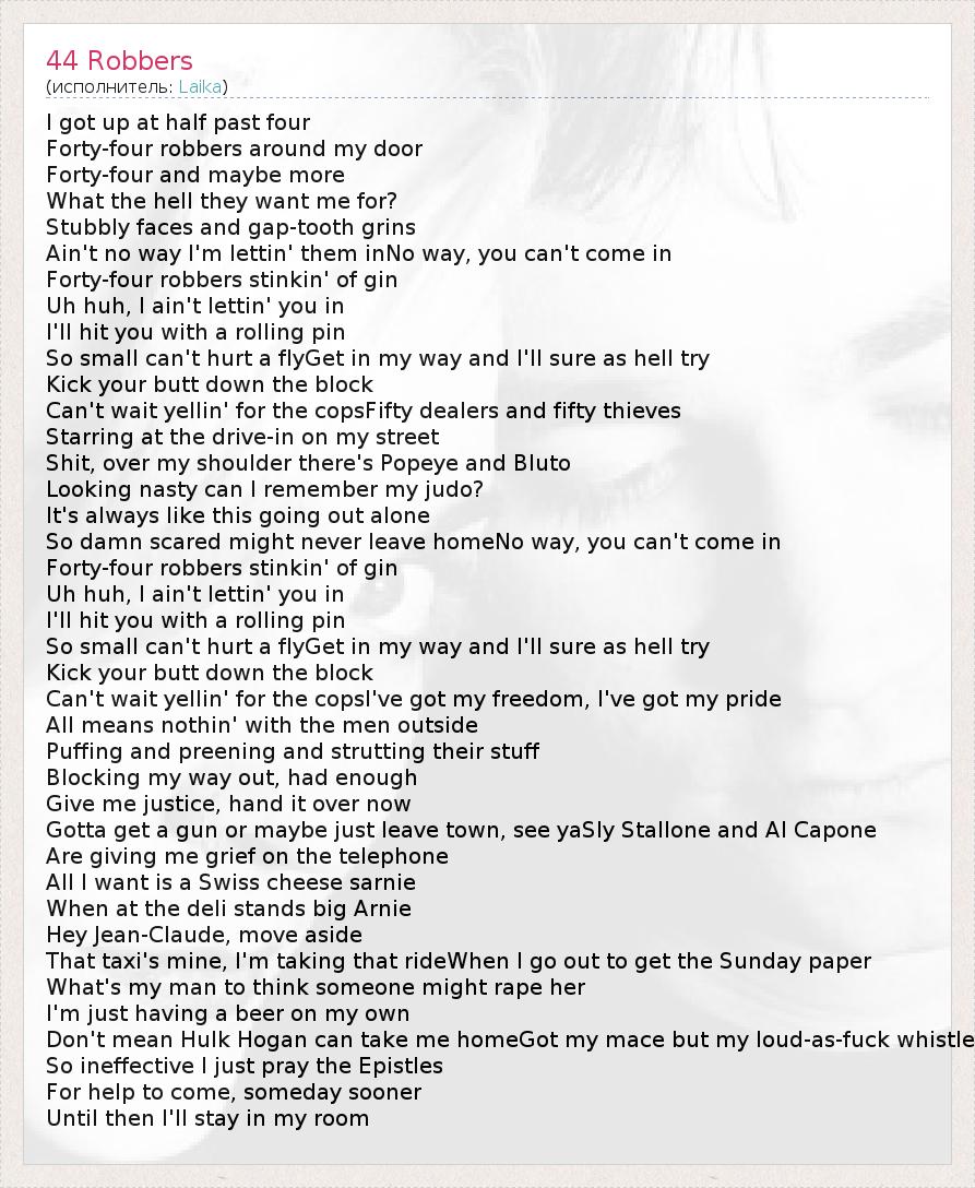 А как ты думаешь, о чем песня "44 Robbers" ?