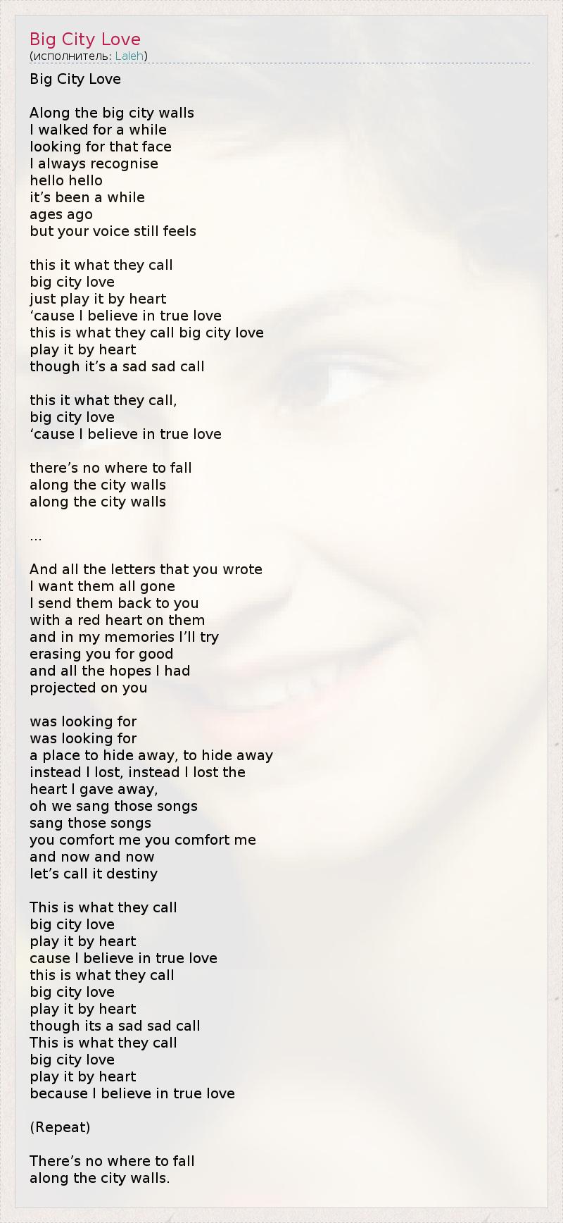 А как ты думаешь, о чем песня "Big City Love" ?