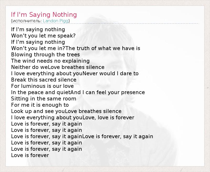 А как ты думаешь, о чем песня "If I'm Saying Nothing" ?