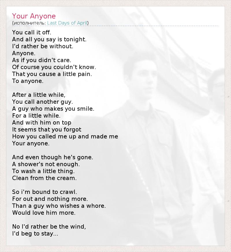 А как ты думаешь, о чем песня "Your Anyone" ?