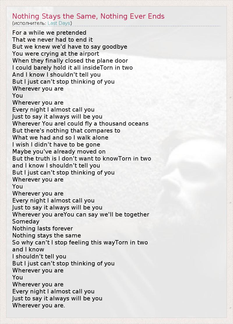 А как ты думаешь, о чем песня "Nothing Stays the Same, Nothing Ever Ends" ?
