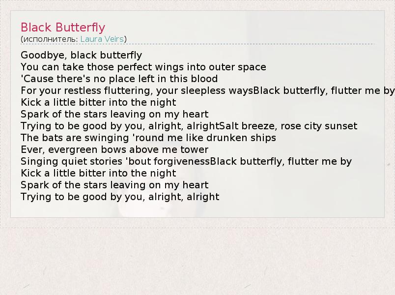 А как ты думаешь, о чем песня "Black Butterfly" ?