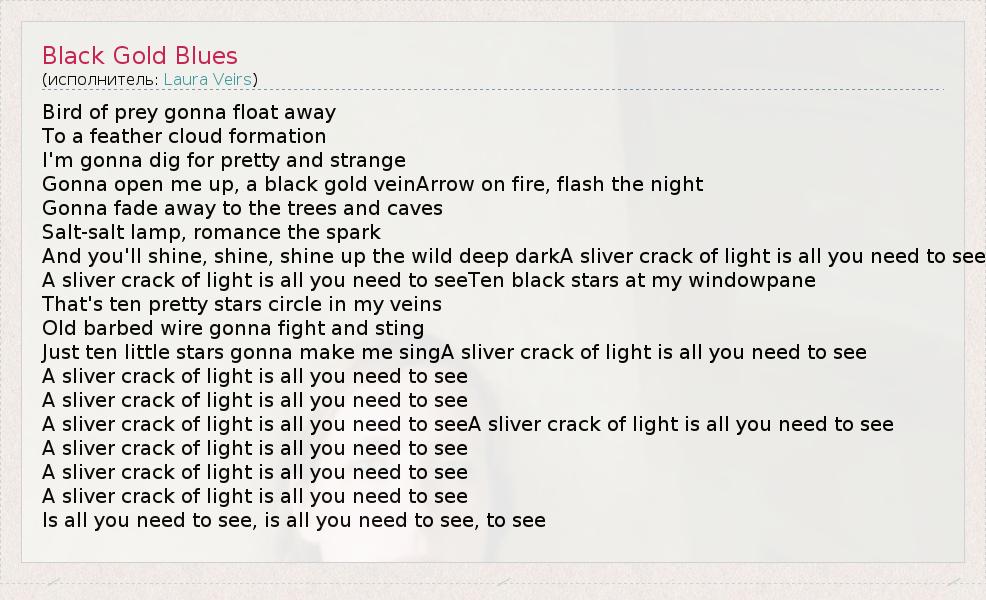 А как ты думаешь, о чем песня "Black Gold Blues" ?
