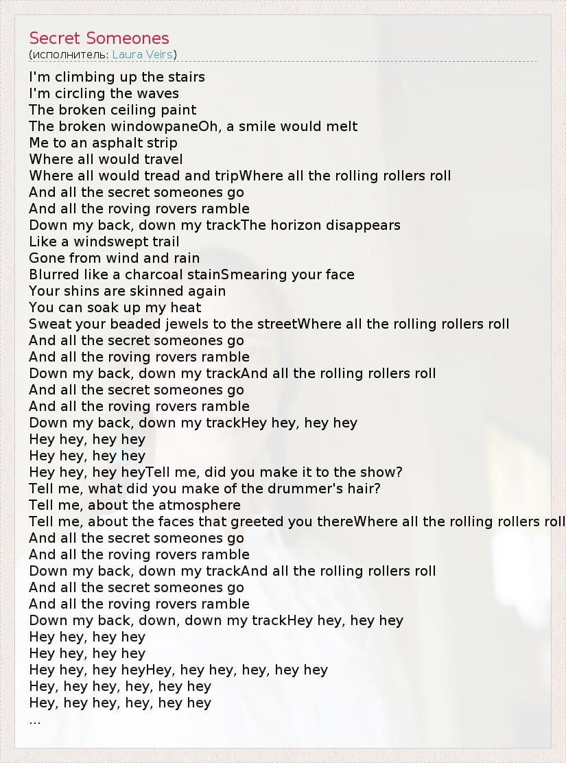 А как ты думаешь, о чем песня "Secret Someones" ?