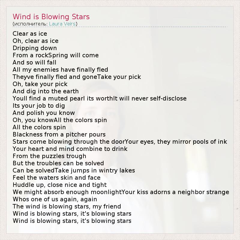 А как ты думаешь, о чем песня "Wind is Blowing Stars" ?