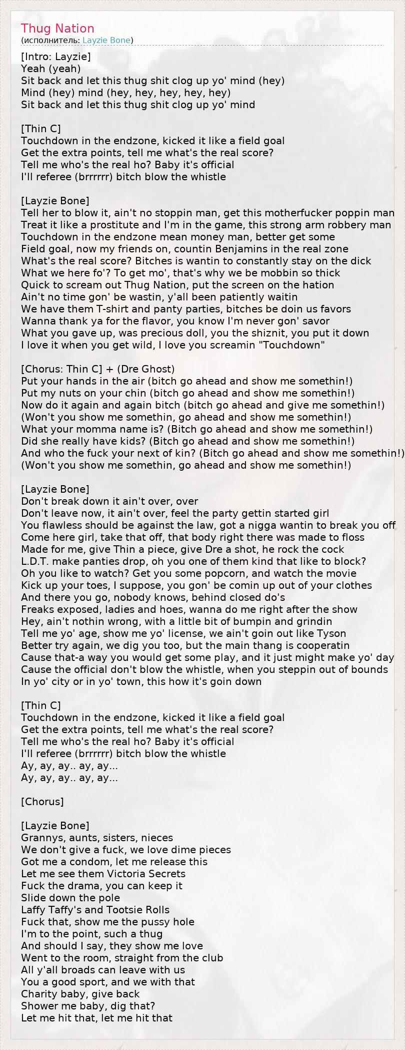 А как ты думаешь, о чем песня "Thug Nation" ?