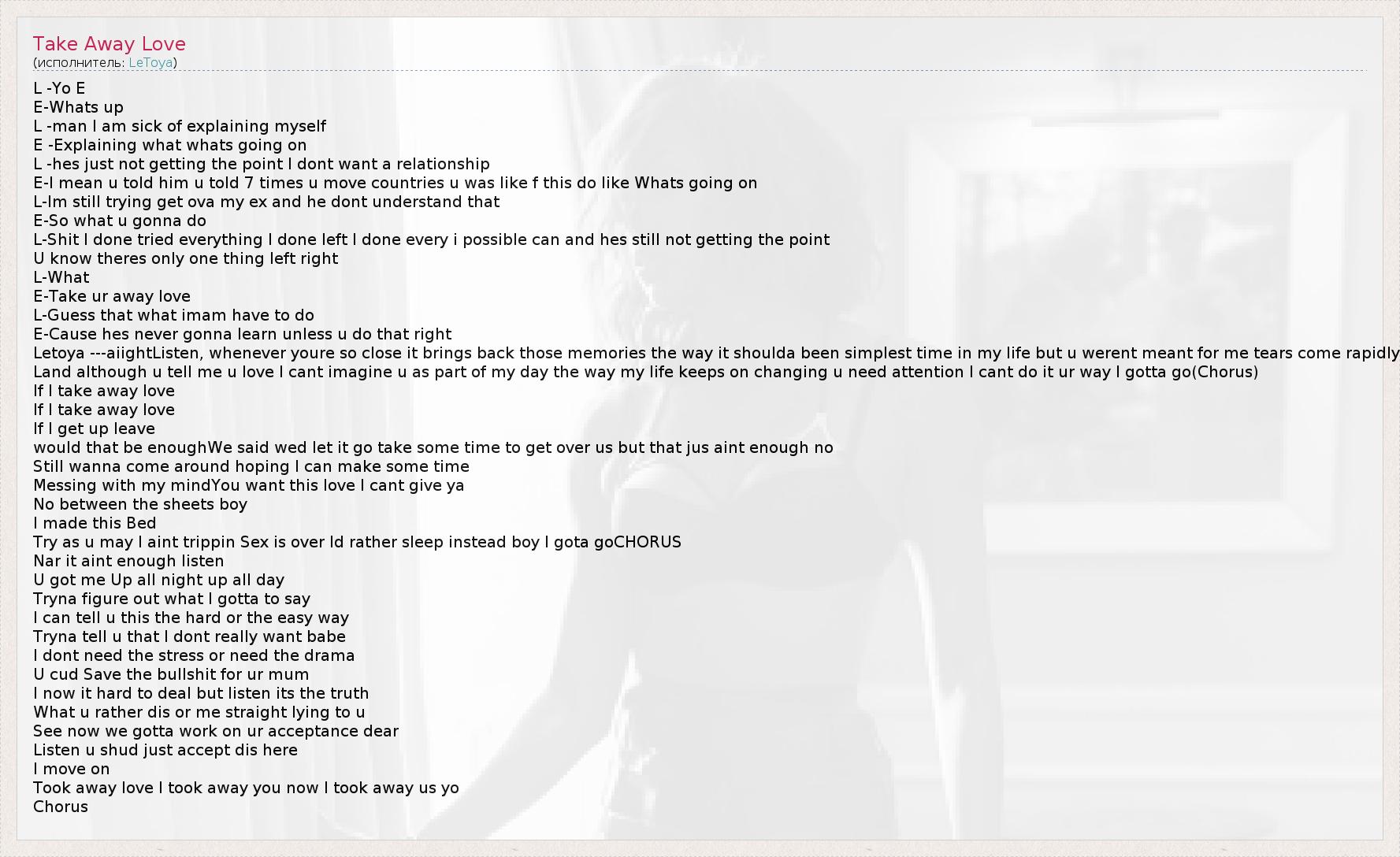 А как ты думаешь, о чем песня "Take Away Love" ?