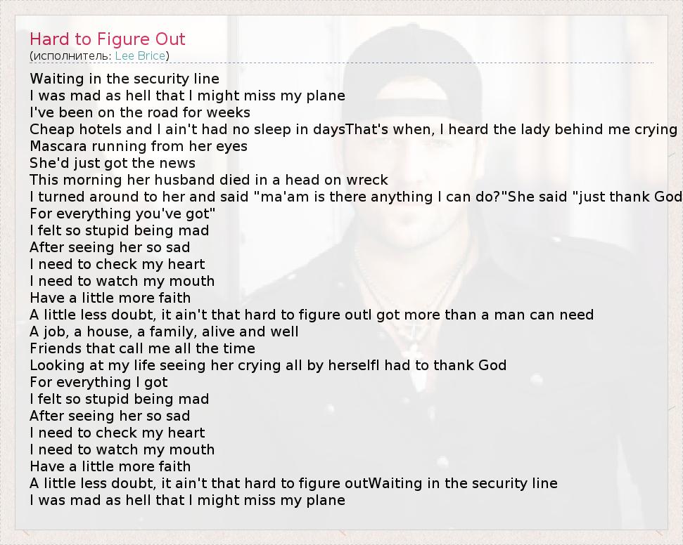 А как ты думаешь, о чем песня "Hard to Figure Out" ?