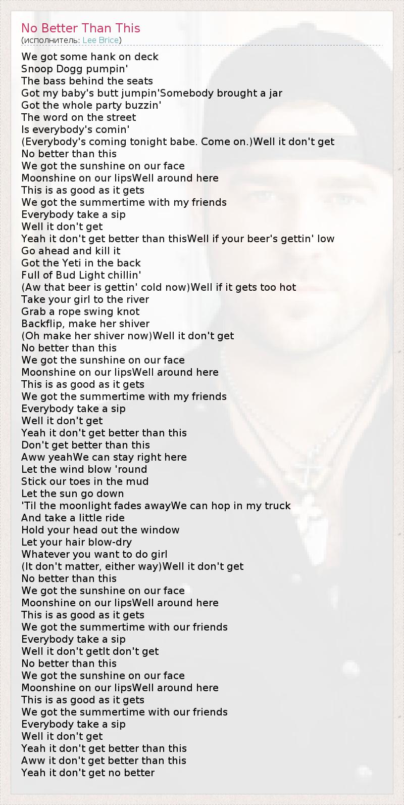 А как ты думаешь, о чем песня "No Better Than This" ?