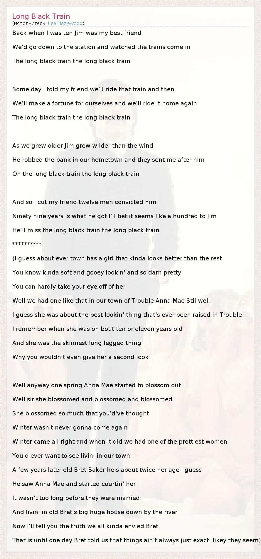 А как ты думаешь, о чем песня "Long Black Train" ?