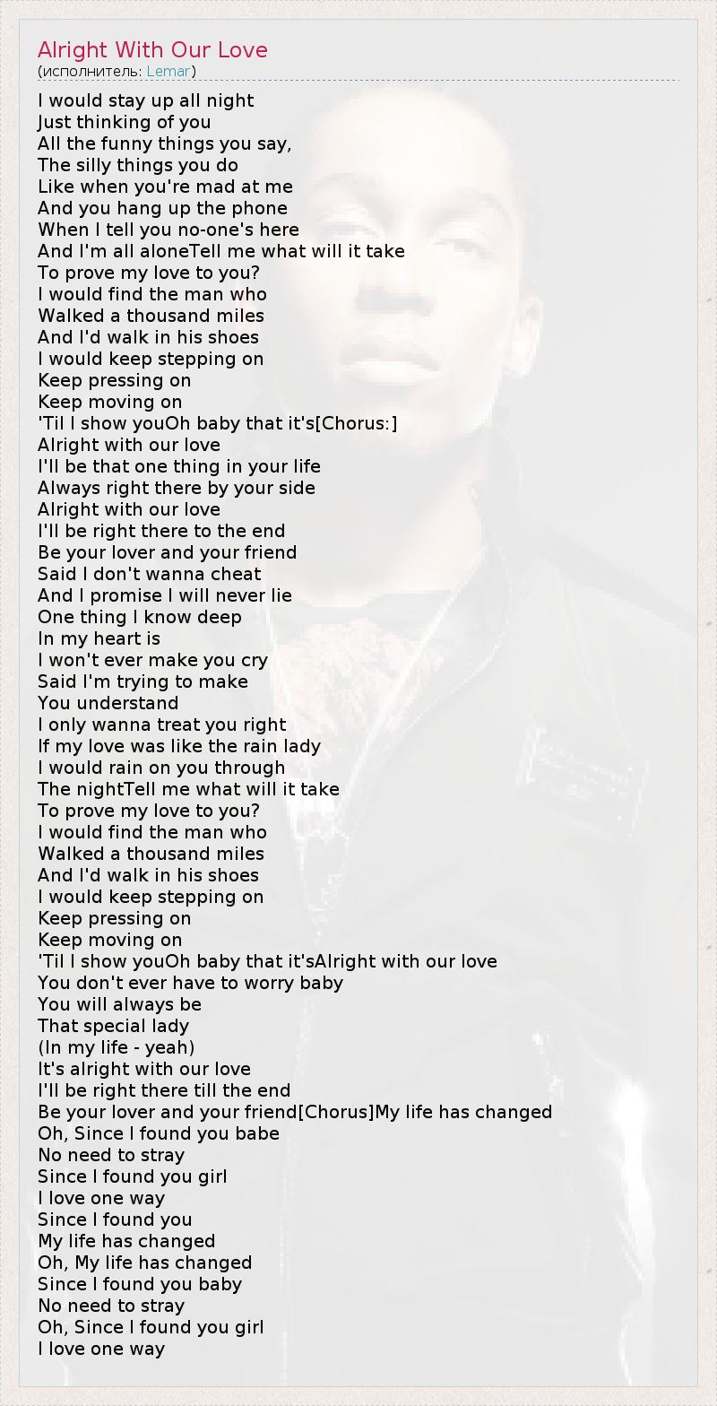 Alright with our love