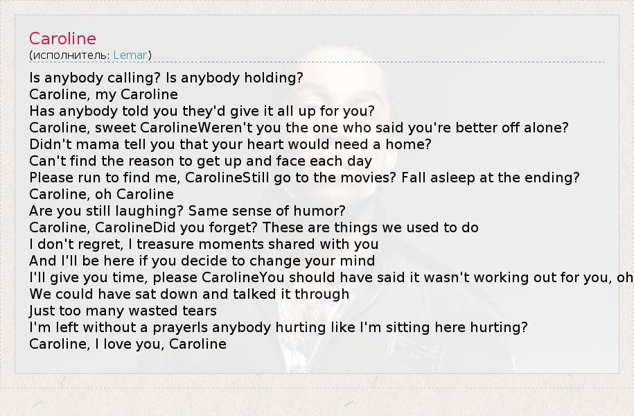 Caroline, sweet CarolineWeren't you the one who said you're better off alone?