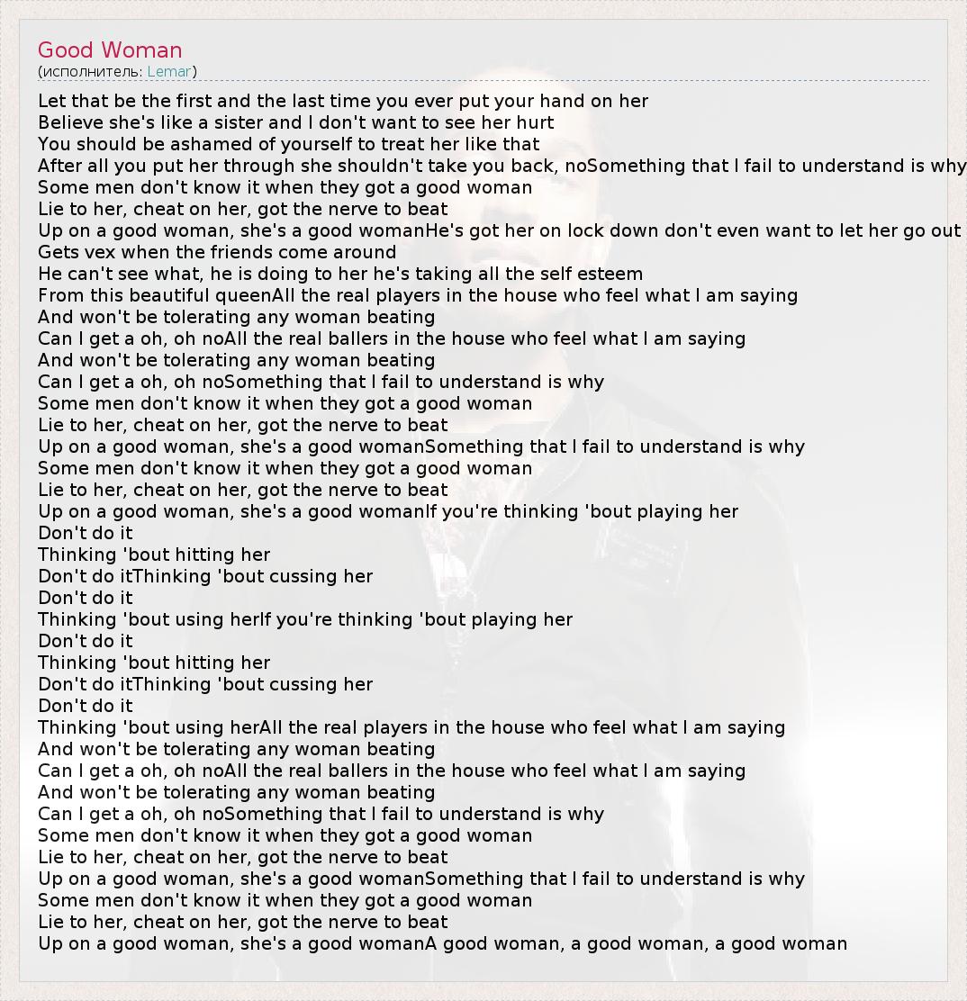 А как ты думаешь, о чем песня "Good Woman" ?