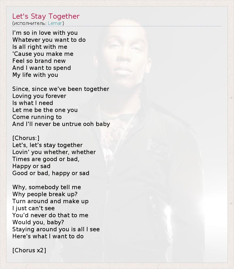А как ты думаешь, о чем песня "Let's Stay Together" ?
