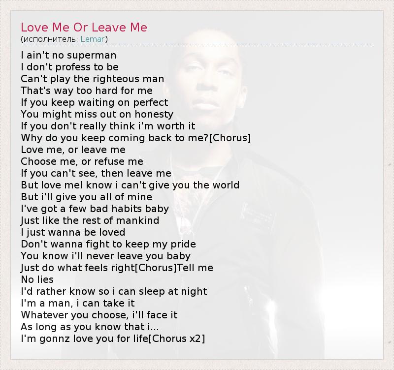 ГлавнаяИсполнителиLemarLove Me Or Leave Me