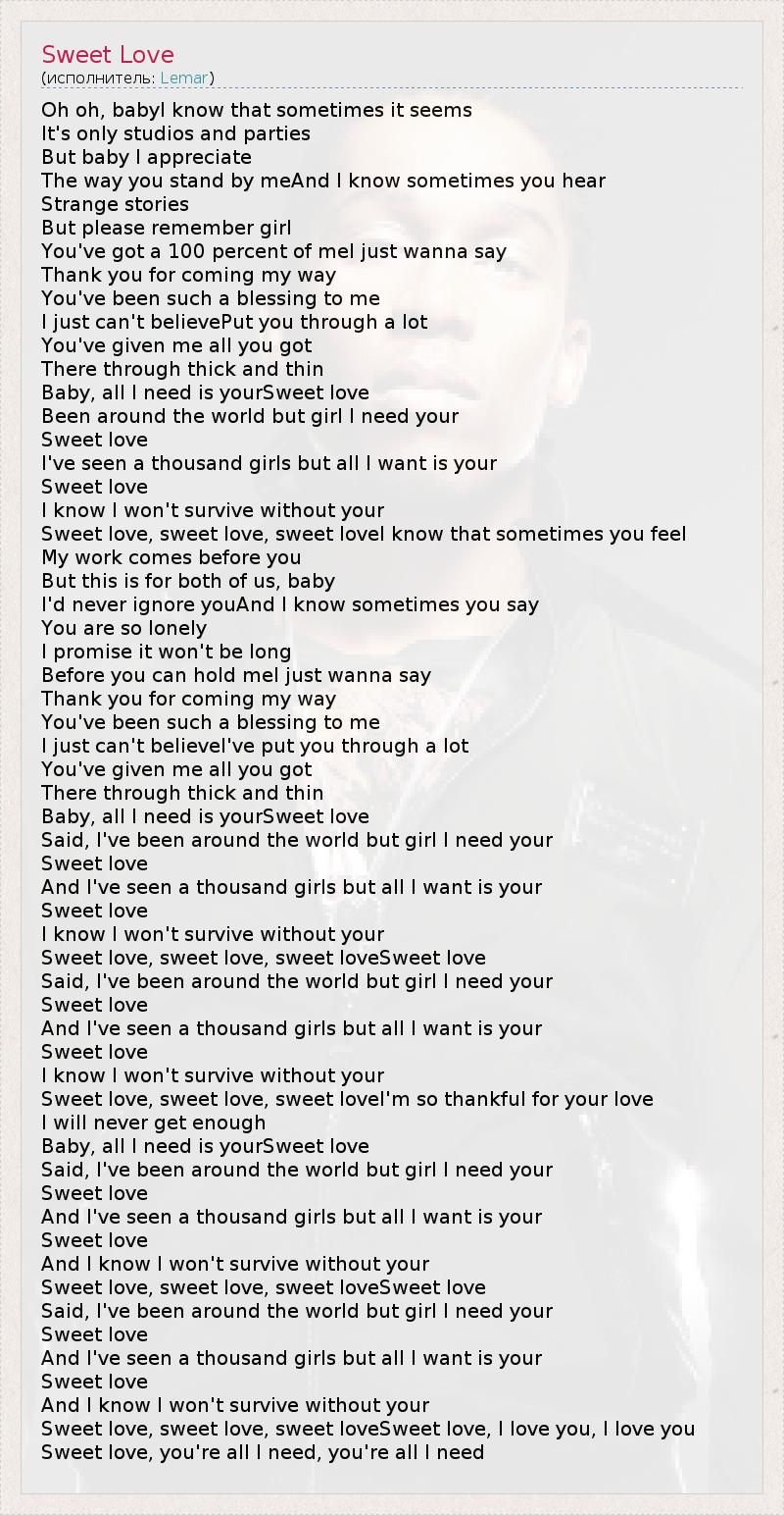 А как ты думаешь, о чем песня "Sweet Love" ?