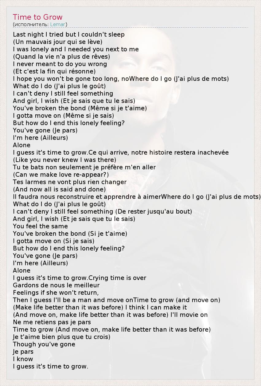 А как ты думаешь, о чем песня "Time to Grow" ?