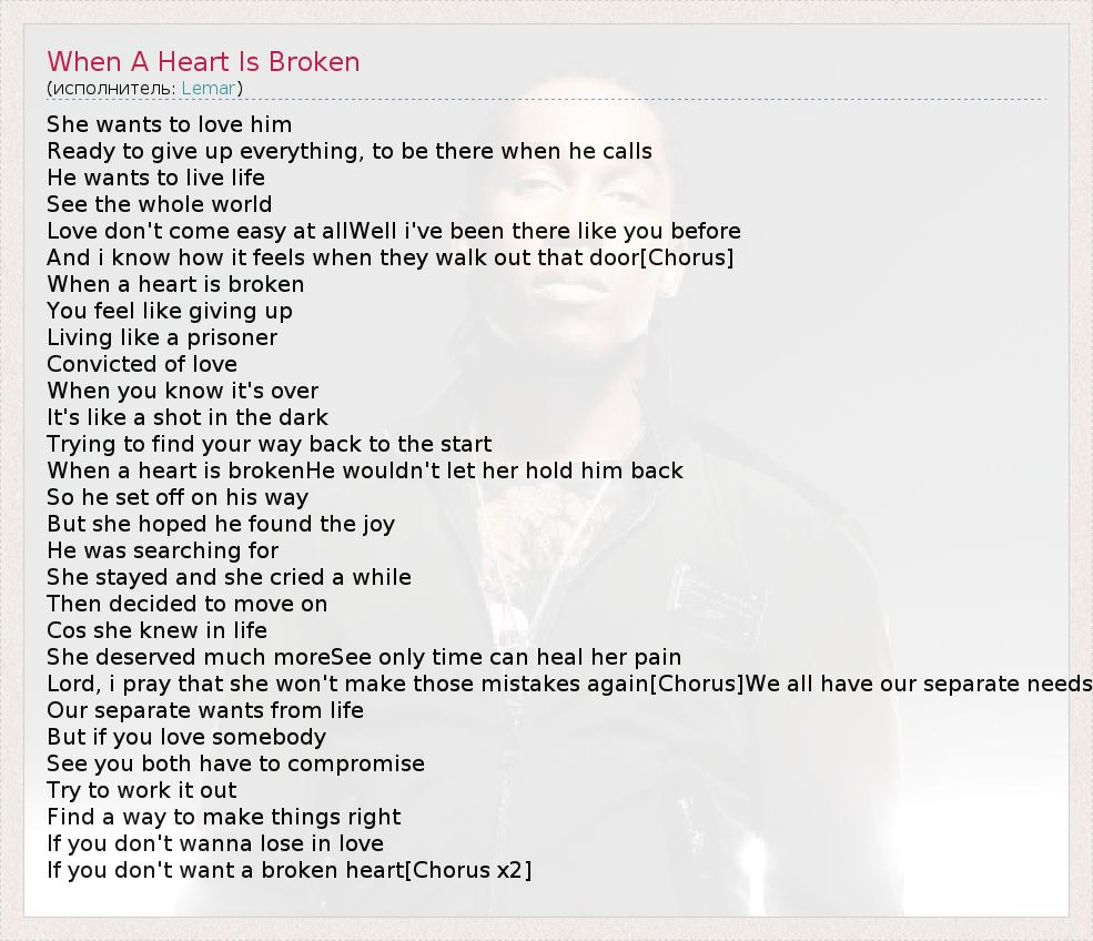 А как ты думаешь, о чем песня "When A Heart Is Broken" ?
