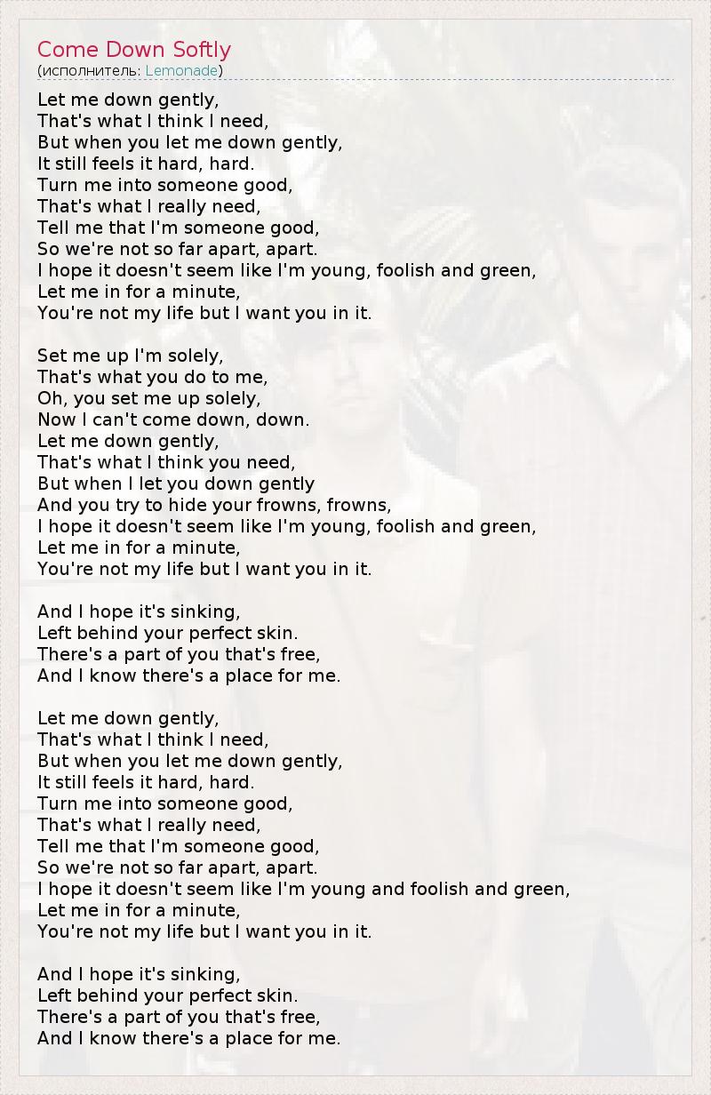 А как ты думаешь, о чем песня "Come Down Softly" ?