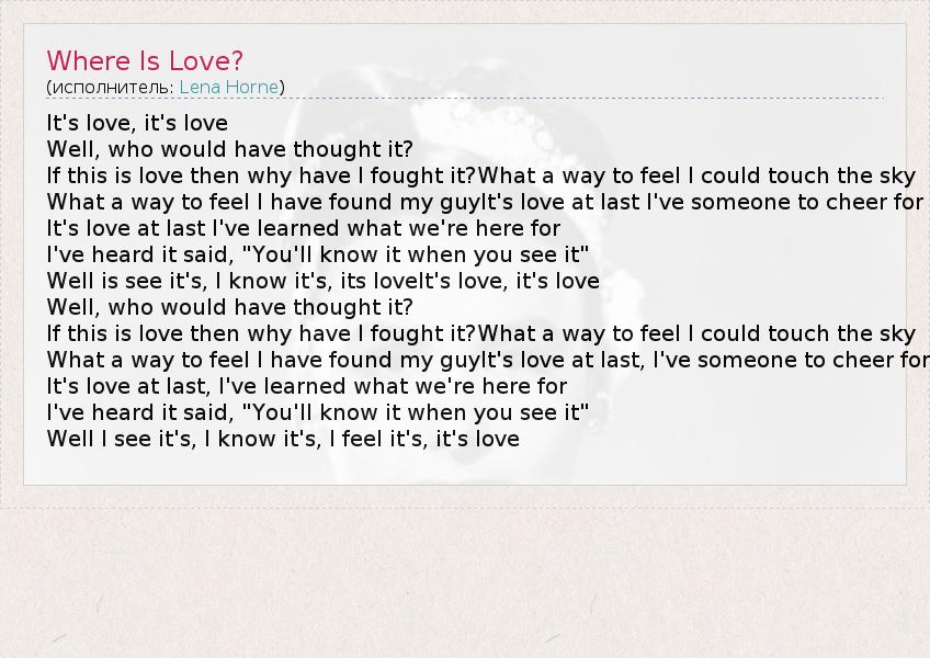 А как ты думаешь, о чем песня "Where Is Love?" ?