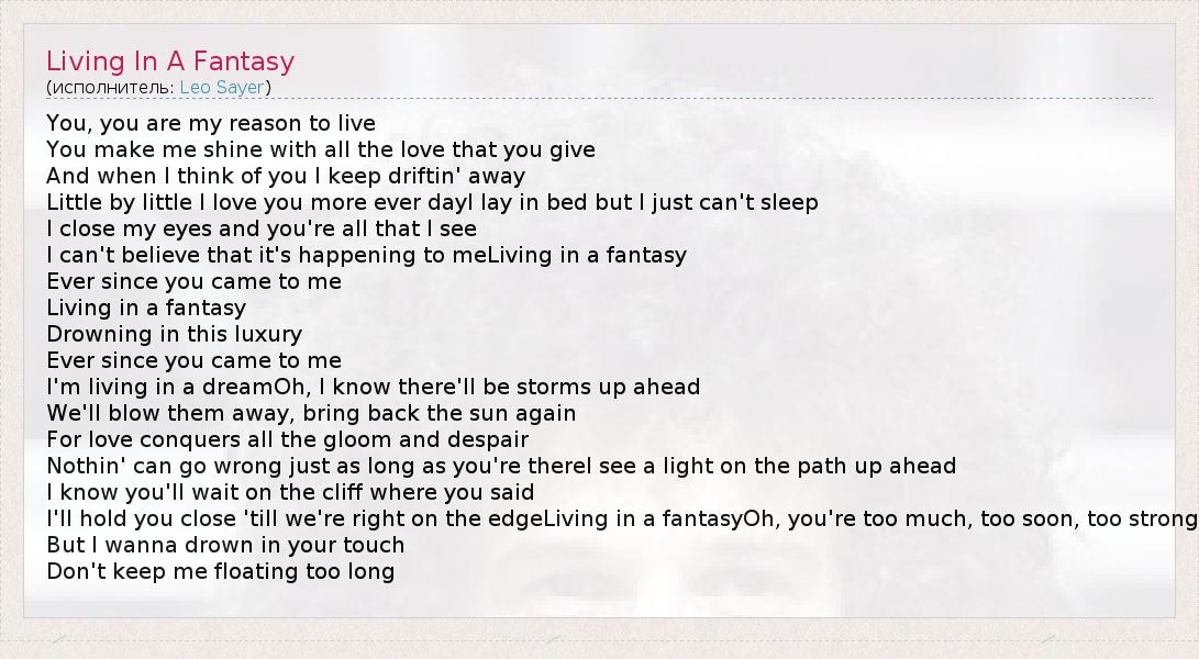 А как ты думаешь, о чем песня "Living In A Fantasy" ?